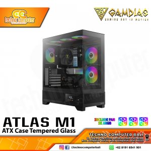 CASING GAMDIAS ATLAS M1 Black - Mid Tower ATX Case Tempered Glass (Free 3x ARGB Fan)